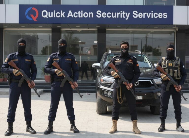 Quick Action Security is a trusted security guard services company in Lahore, Pakistan. We offer trained guards, bodyguards, and private security solutions for homes, businesses, and events, ensuring safety and peace of mind.
