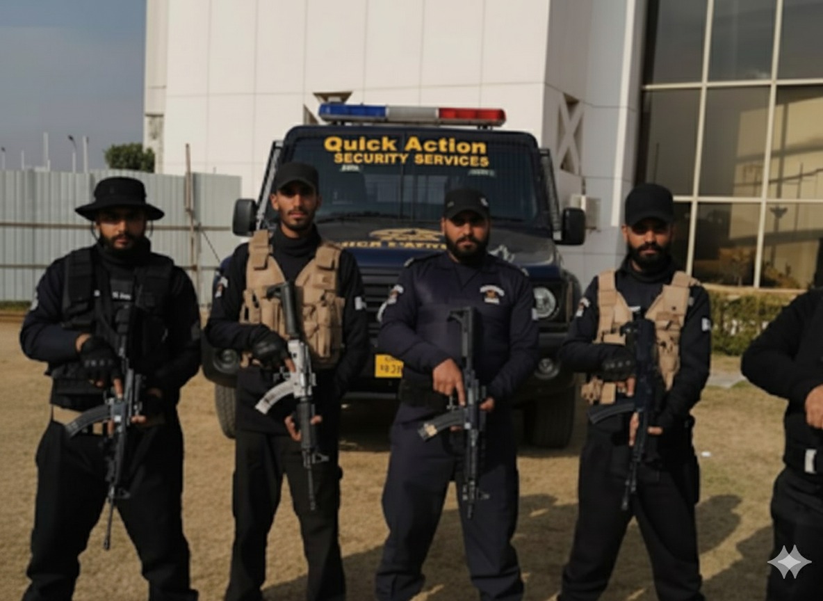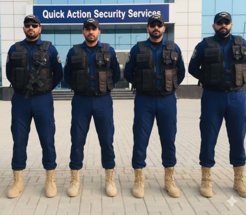 Quick Action Security is a trusted security guard services company in Lahore, Pakistan. We offer trained guards, bodyguards, and private security solutions for homes, businesses, and events, ensuring safety and peace of mind.